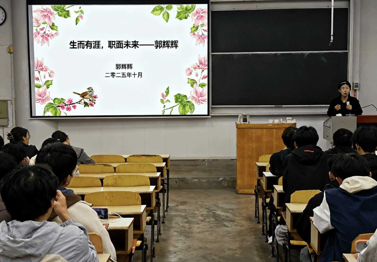 10月28日晚,车辆与交通工程学院在西苑校区八号楼201、101、102教室举办“生而有涯,职面未来”职业生涯讲座。此次讲座特邀学校本科生工作处学业发展指导中心主任郭辉辉主讲,学院2025级本科生辅导员王志主持,2025级全体同学参加。