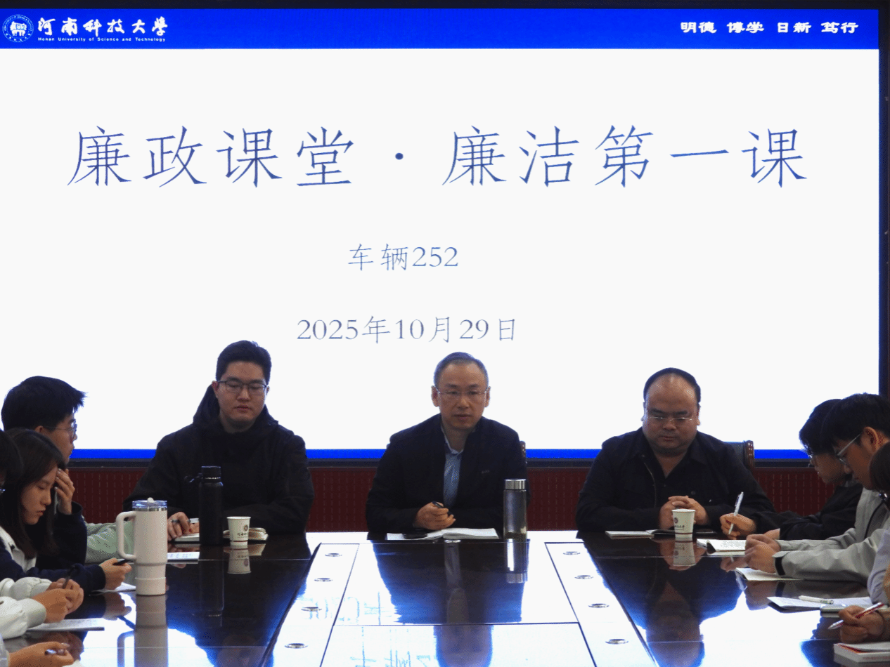 10月29日下午,车辆与交通工程学院在西苑校区2号楼225会议室开展“廉政课堂·廉洁第一课”专题讲座。学院党委书记冯飞、学业导师张帅、2025级本科生辅导员王志以及车辆252班全体同学参与此次专题讲座。