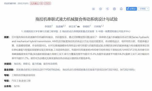 5 拖拉机串联式液力机械复合传动系统设计与试验-农业机械学报