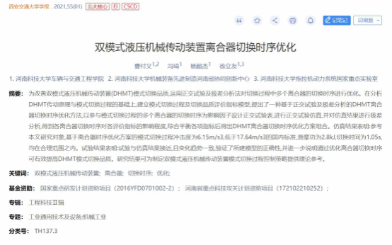 3 双模式液压机械传动装置离合器切换时序优化-西安交通大学学报