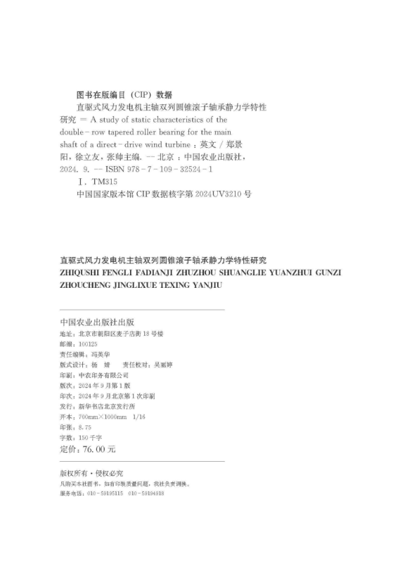 29 A study of static characteristics of the double-row tapered roller bearing for the main shaft of a direct-drive wind turbine-China Agricultural Press